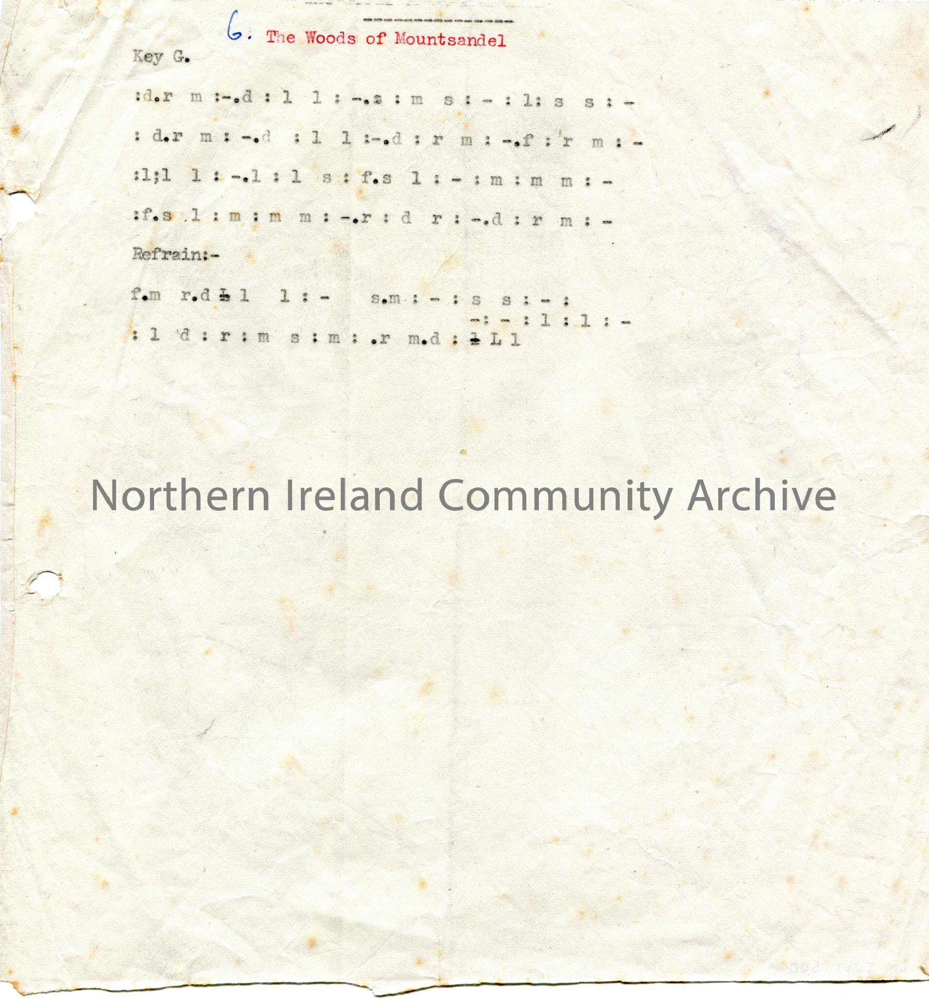 Typed tonic sol-fa notation to ‘The Woods of Mountsandel’ in key G.