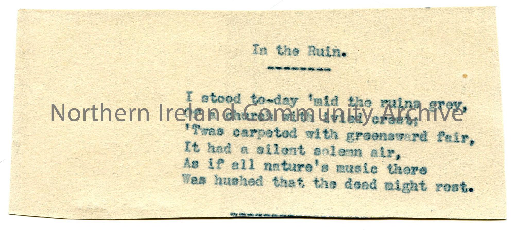Typed verse on small piece of paper titled, ‘In the Ruin’.