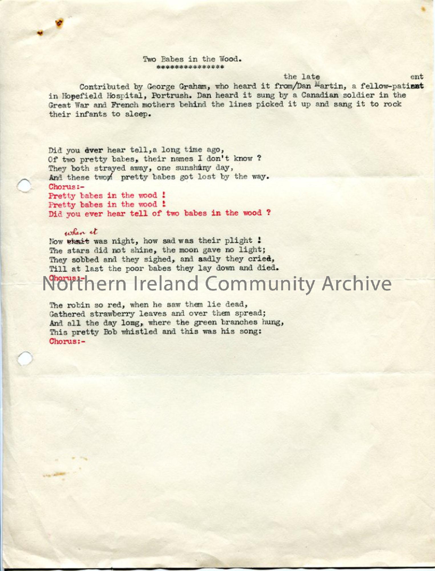 Typed words and tonic sol-fa notation of ‘Babes in the Wood’