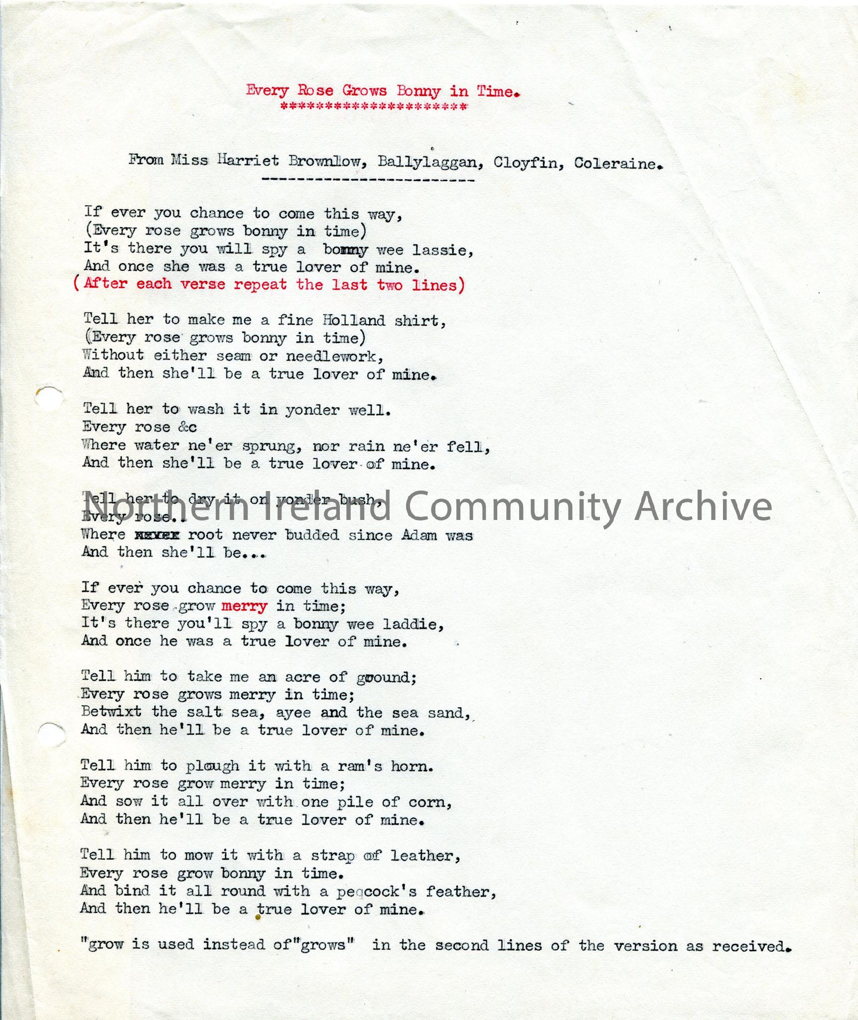 Typed words to a version of ‘Every Rose Grows Bonny in Time’.