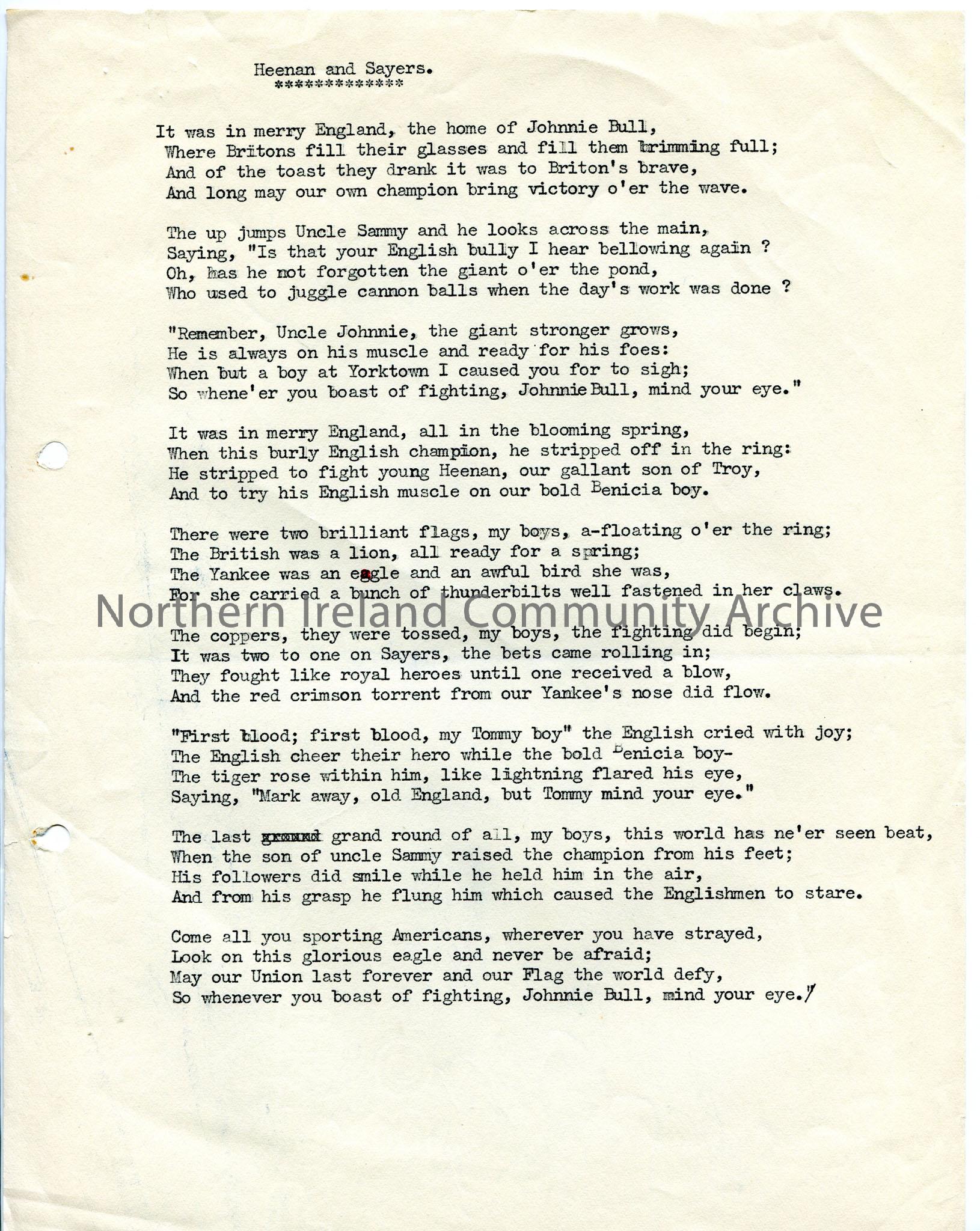 Typed words to alternative 9 verse version of ‘Heenan and Sayers’.