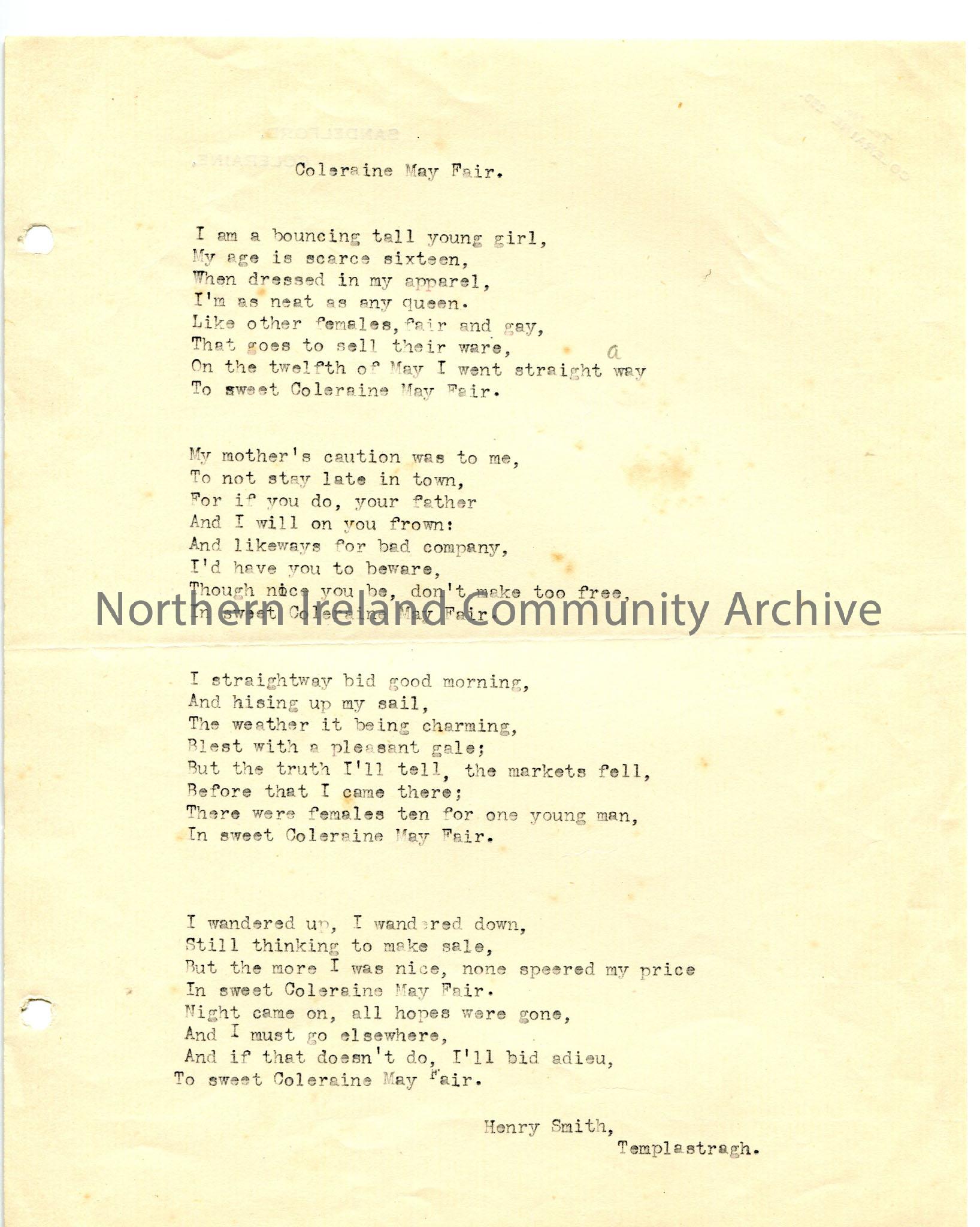 Typed words to ‘Coleraine May Fair’.