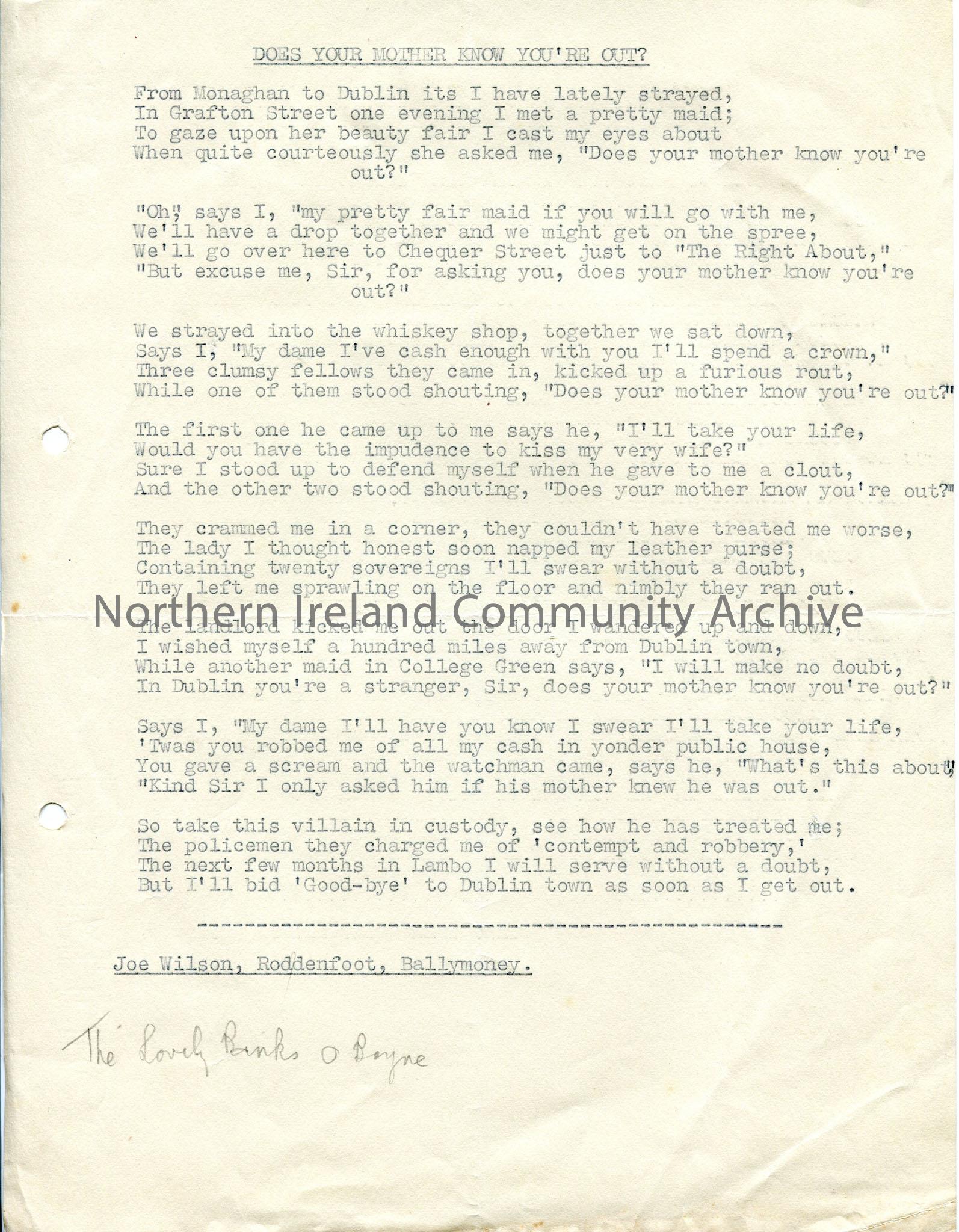 Typed words to ‘Does Your Mother Know You’re Out?’.