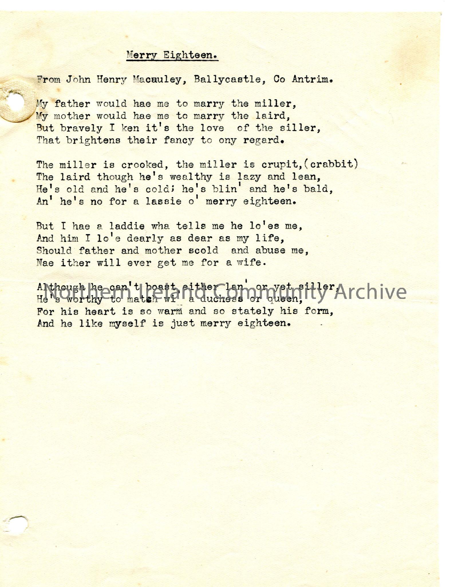 Typed words to ‘Merry Eighteen’. Uses local dialect