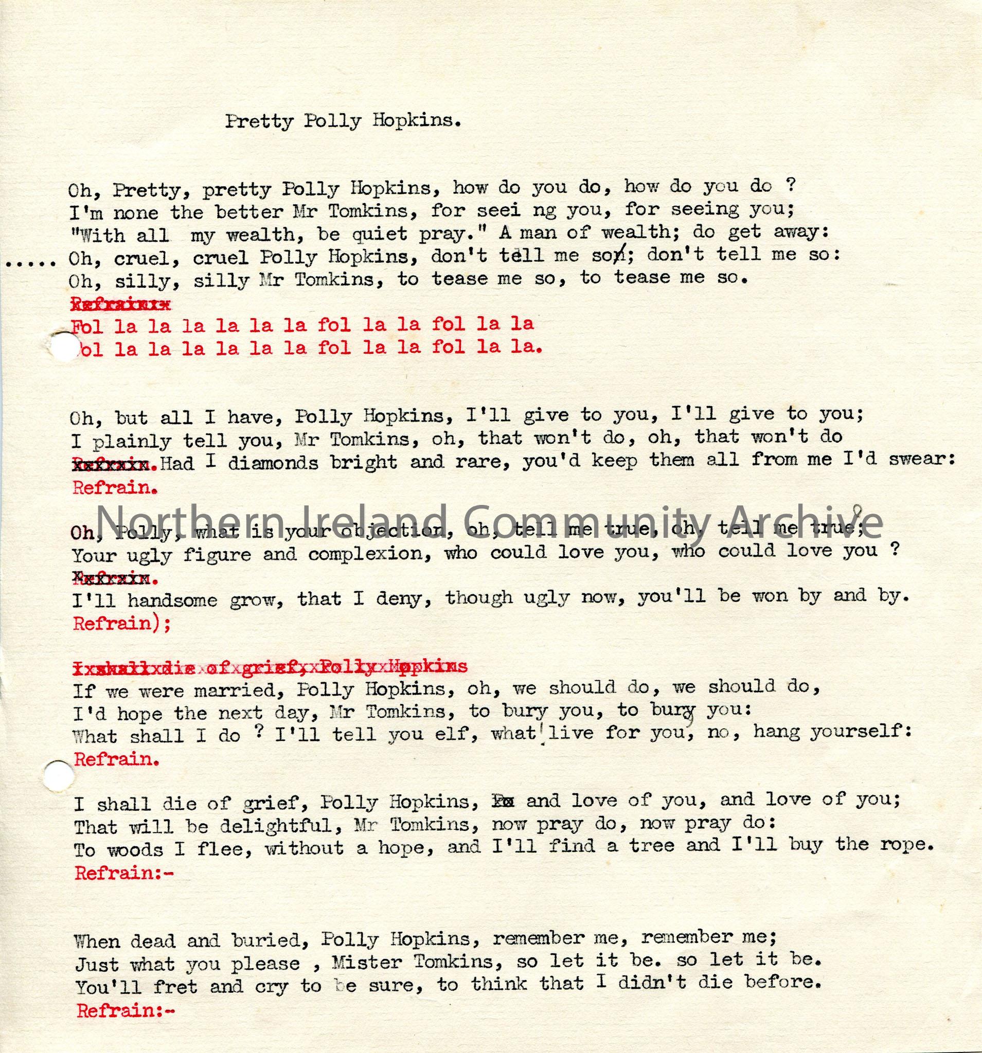 Typed words to ‘Pretty Polly Hopkins’.