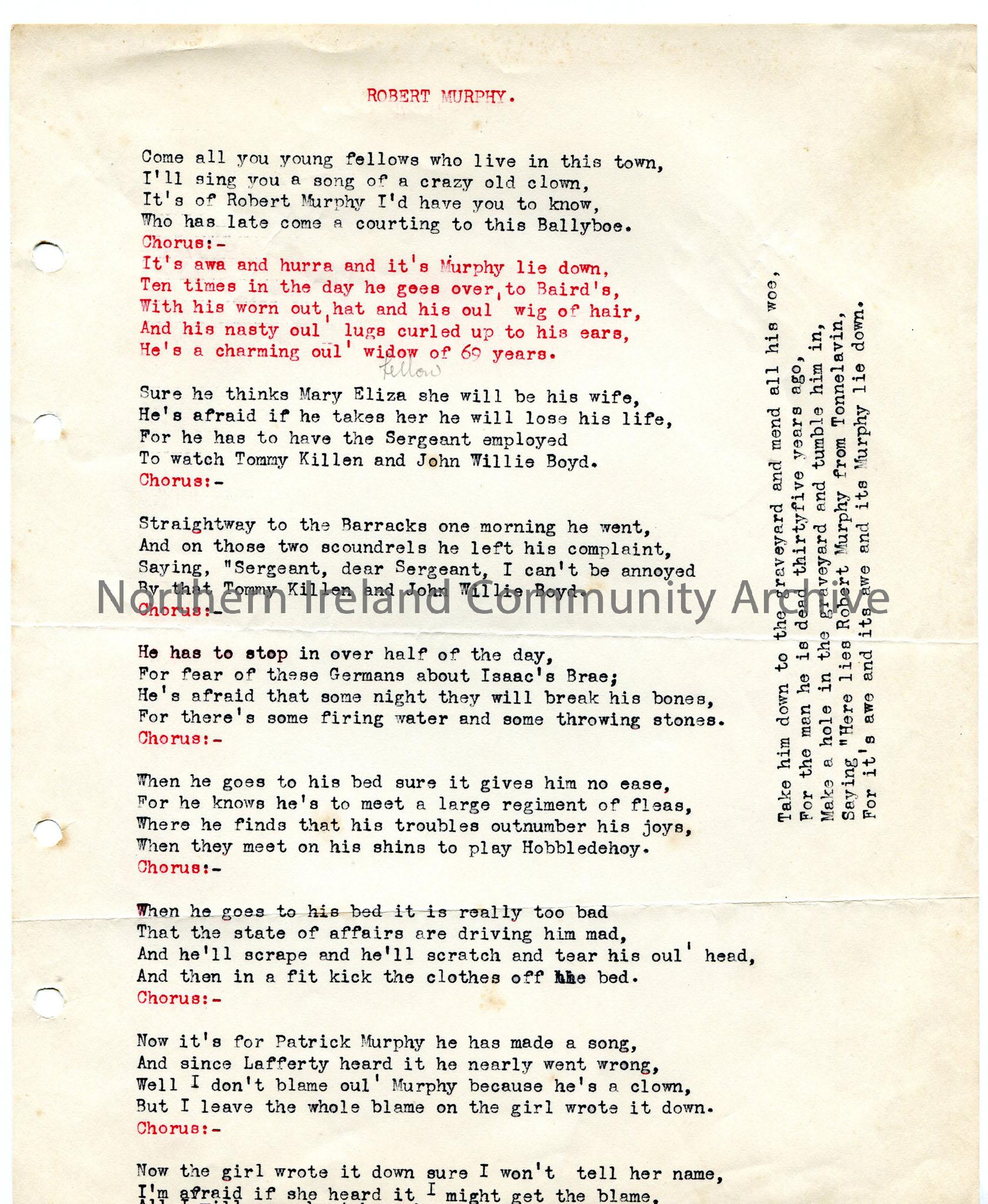 Typed words to 'Robert Murphy'. Uses local dialect.