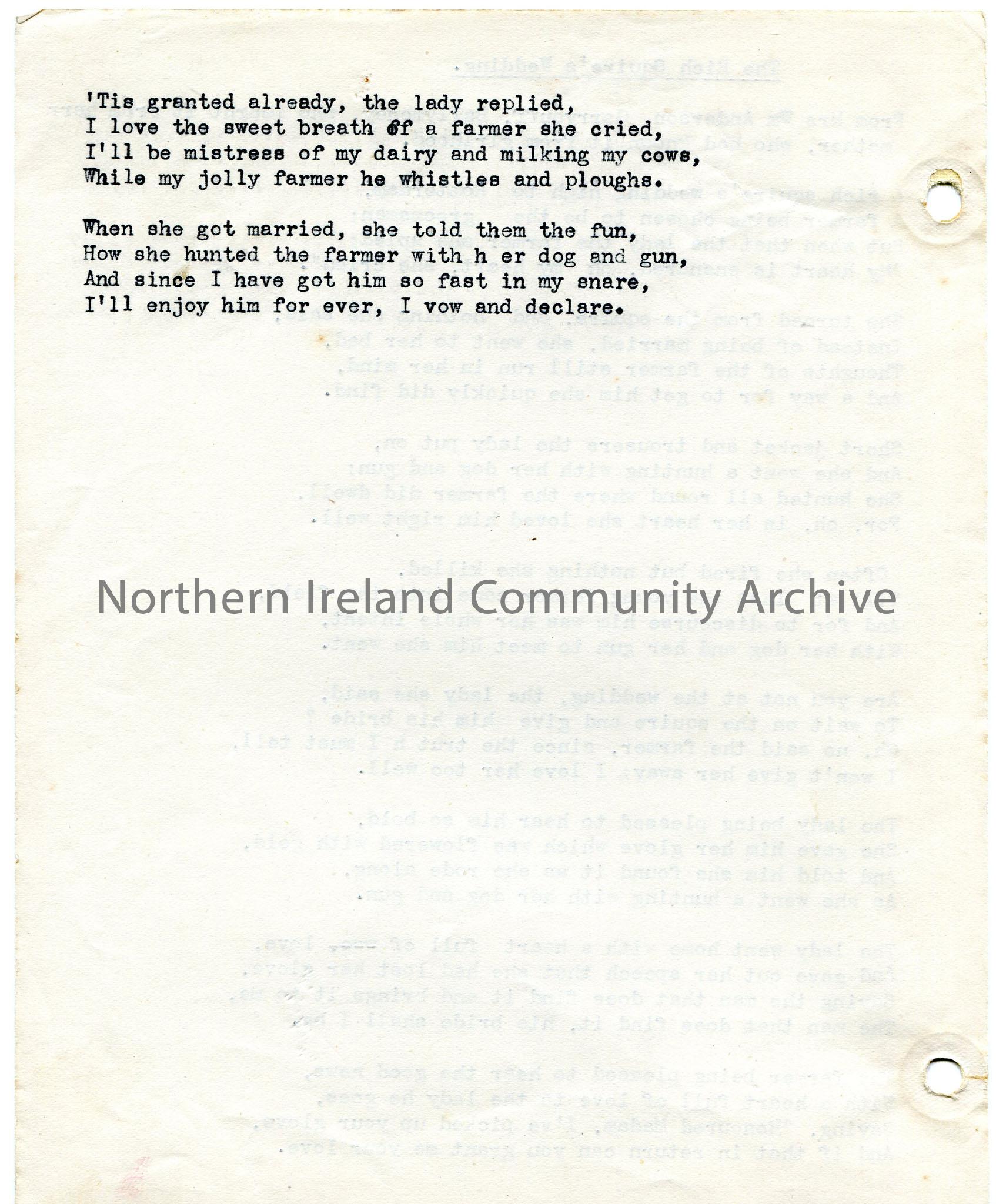 Typed words to 'The Rich Squire's Wedding' - on both sides of page.