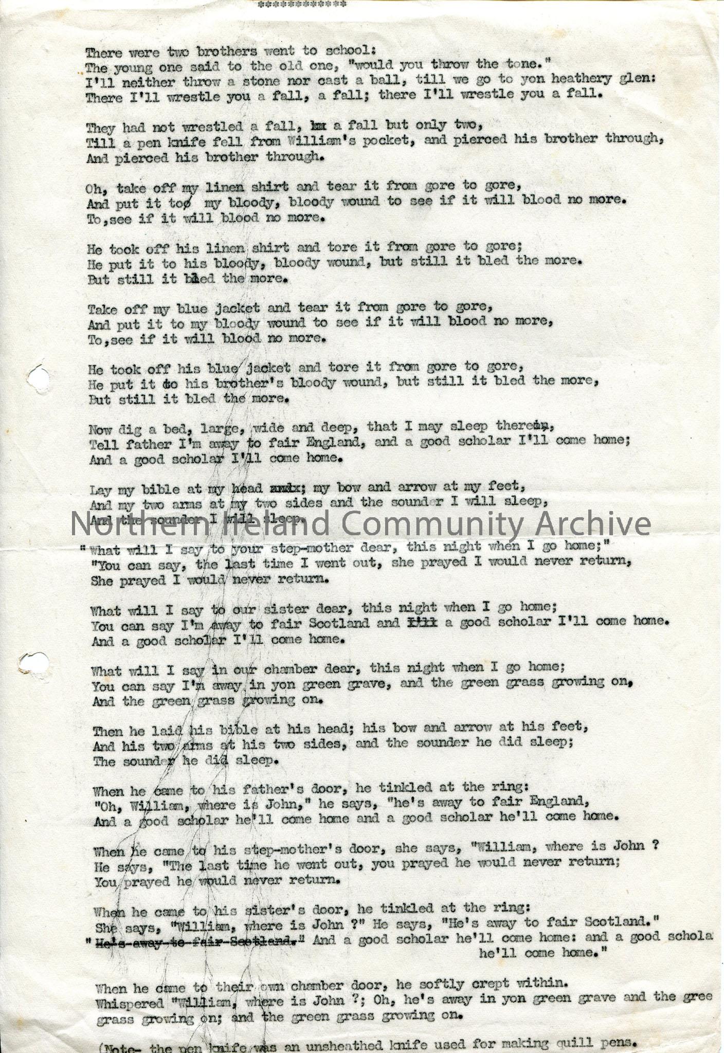 Typed words to 'The Two Brothers' - 16 verses.