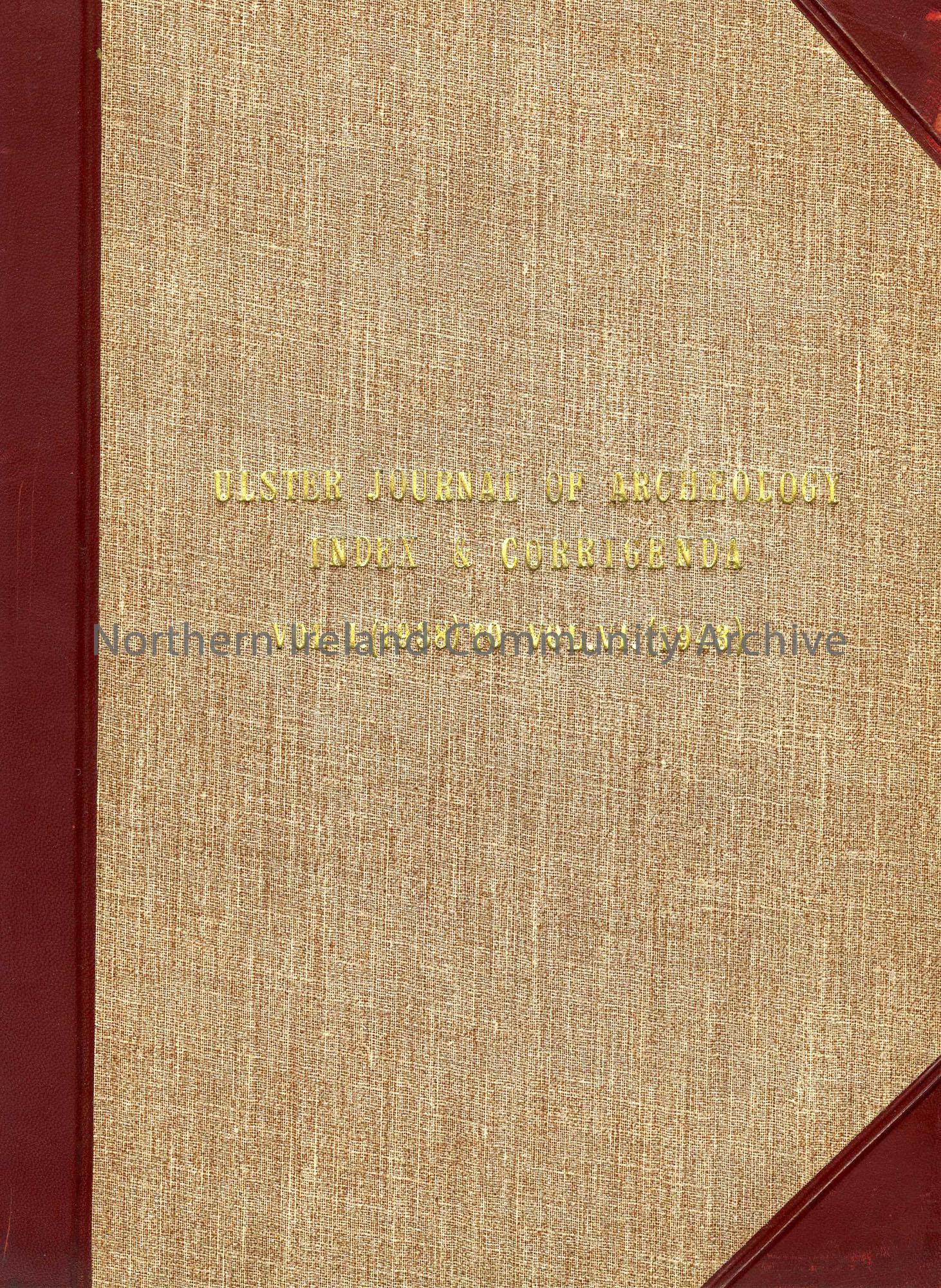 Book titled, Ulster Journal of Archaeology. Index and Corrigenda. Vol.1 (1938) to Vol.V1. (1943)