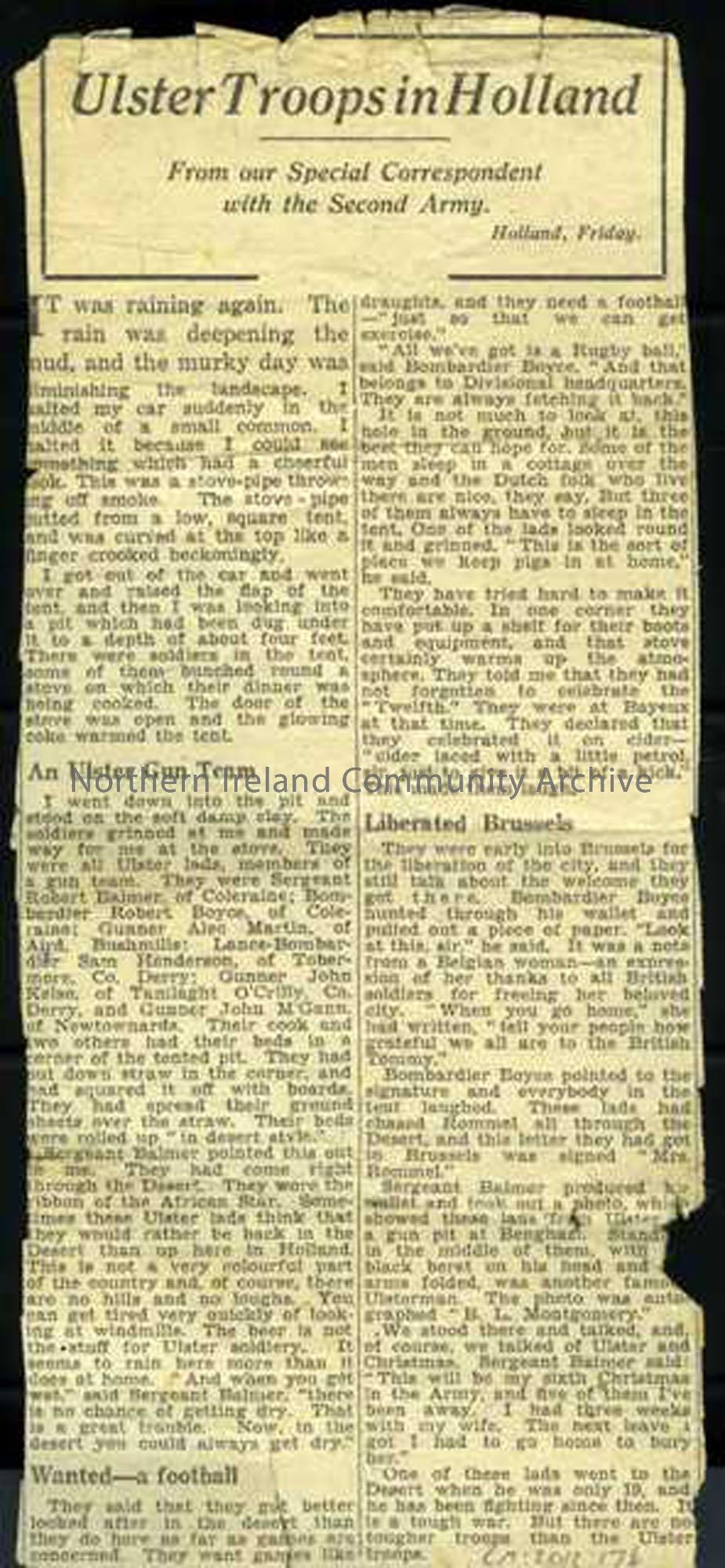 ‘Ulster Troops in Holland’ newspaper article