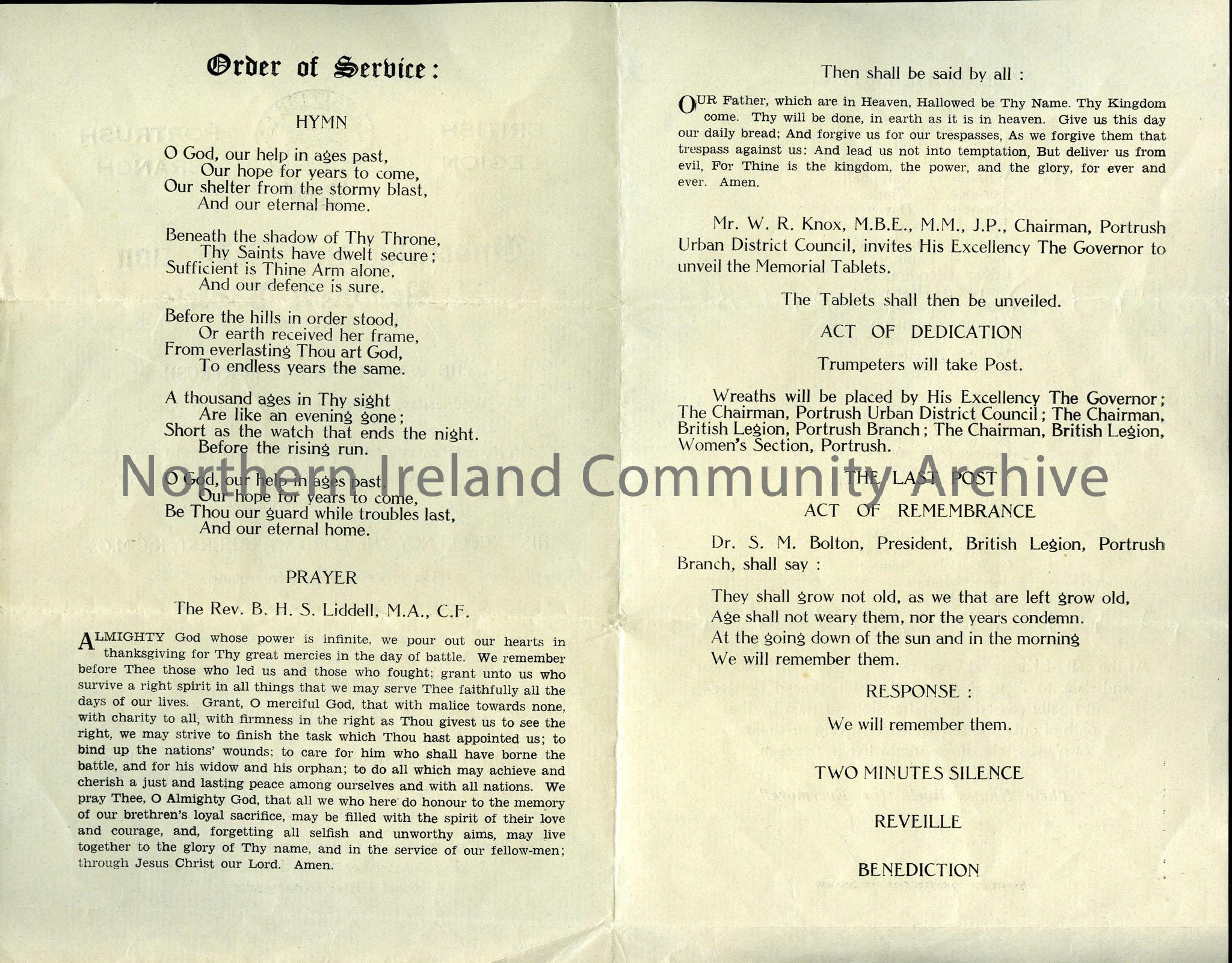 Unveiling and Dedication of Memorial Tablets at the War Memorial, Portrush. Organised by the British Legion – Portrush Branch. Wednesday 13th June 195… – Scan424.b