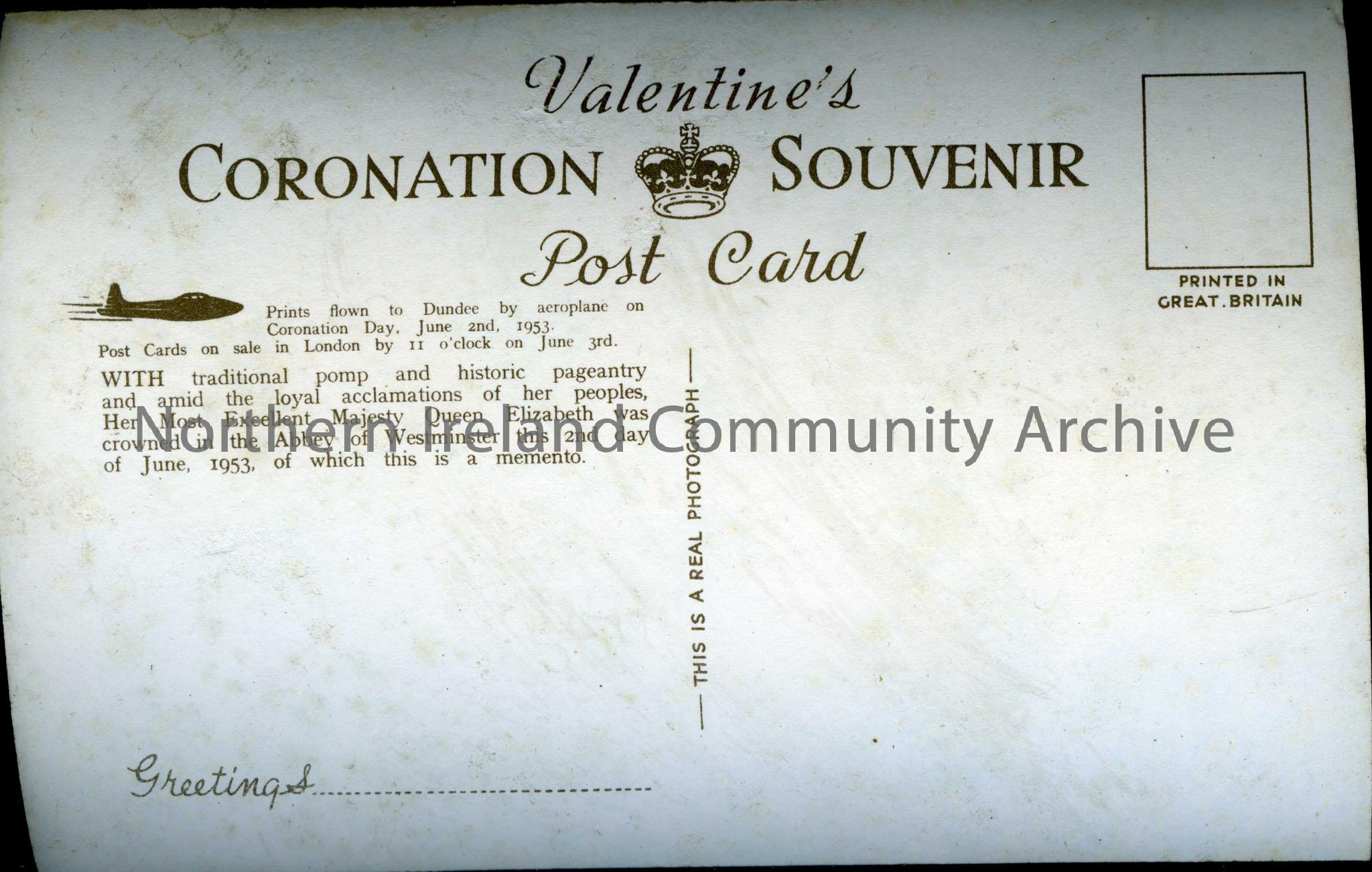 Valentine’s souvenir postcard of the Coronation of Queen Elizabeth II. – scan60b