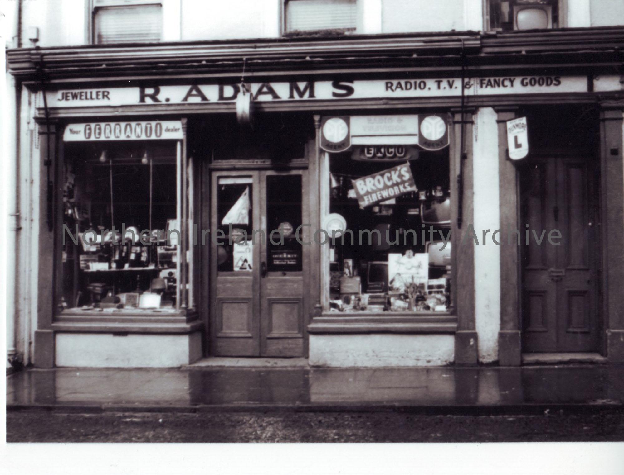 View of shop front, R. Adams, Jeweller, Radio, TV and Fancy Goods