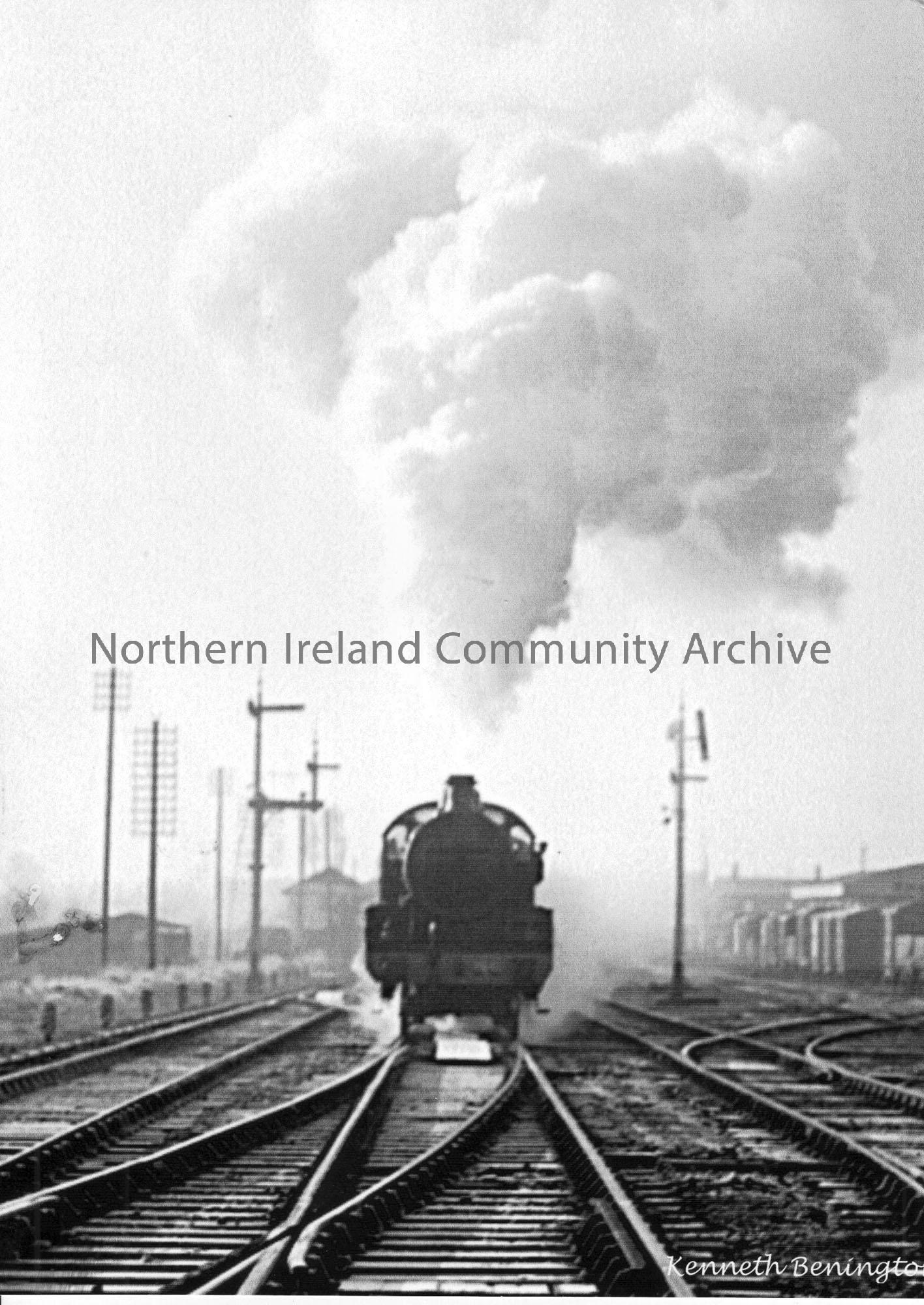 W class 2-6-0 No.96 ‘Silver Jubilee’is leaving the platform at Ballymoney with a train for Belfast