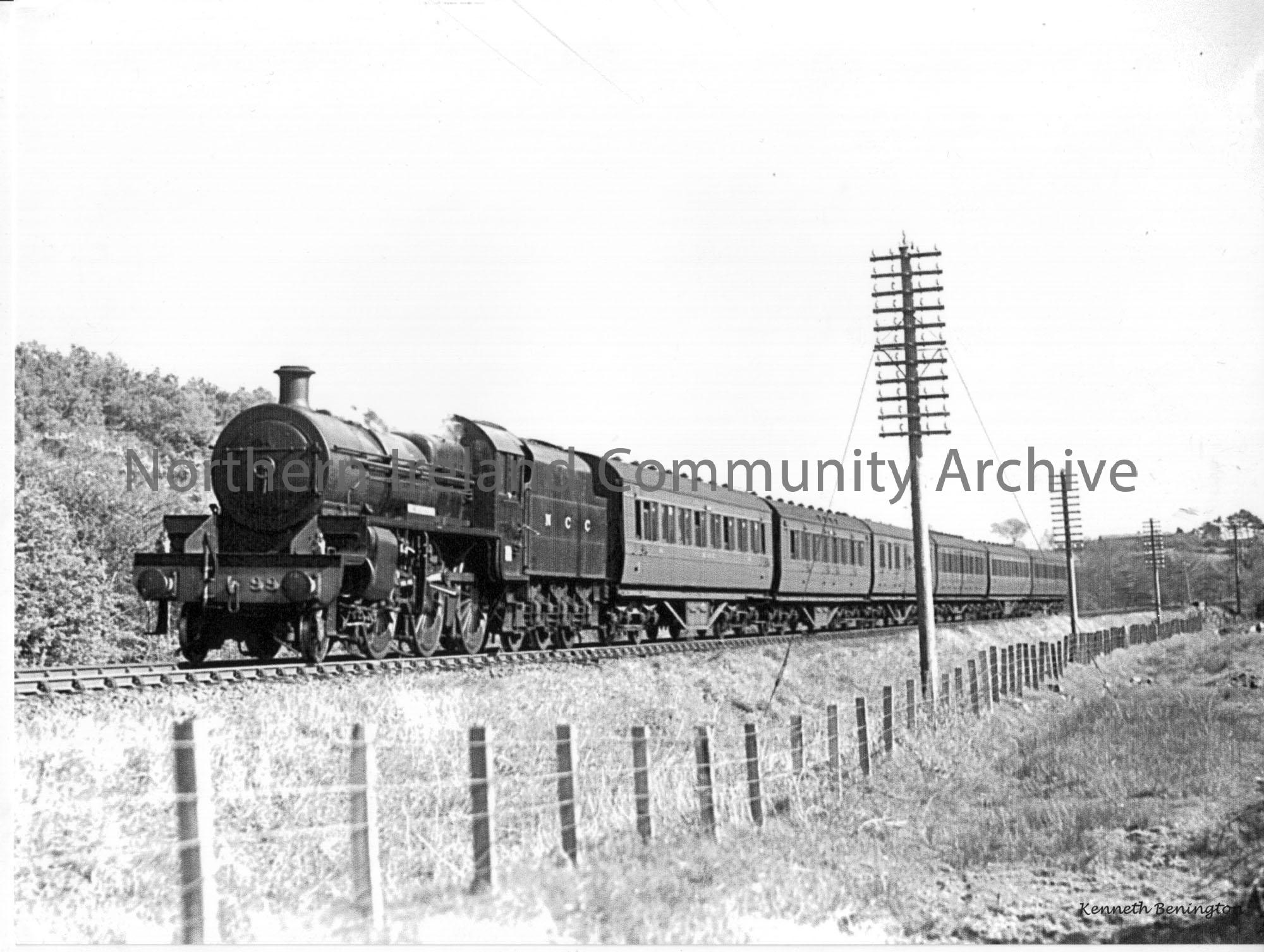 W class 2-6-0 No.99 ‘King George VI’ in NCC livery as it approaches Ballyboyland quarry with a Belfast to Derry Train about 1948