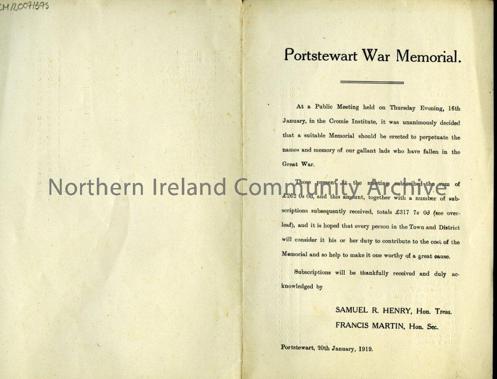 War Memorial Fund documents, Porstewart 1919 (1725)