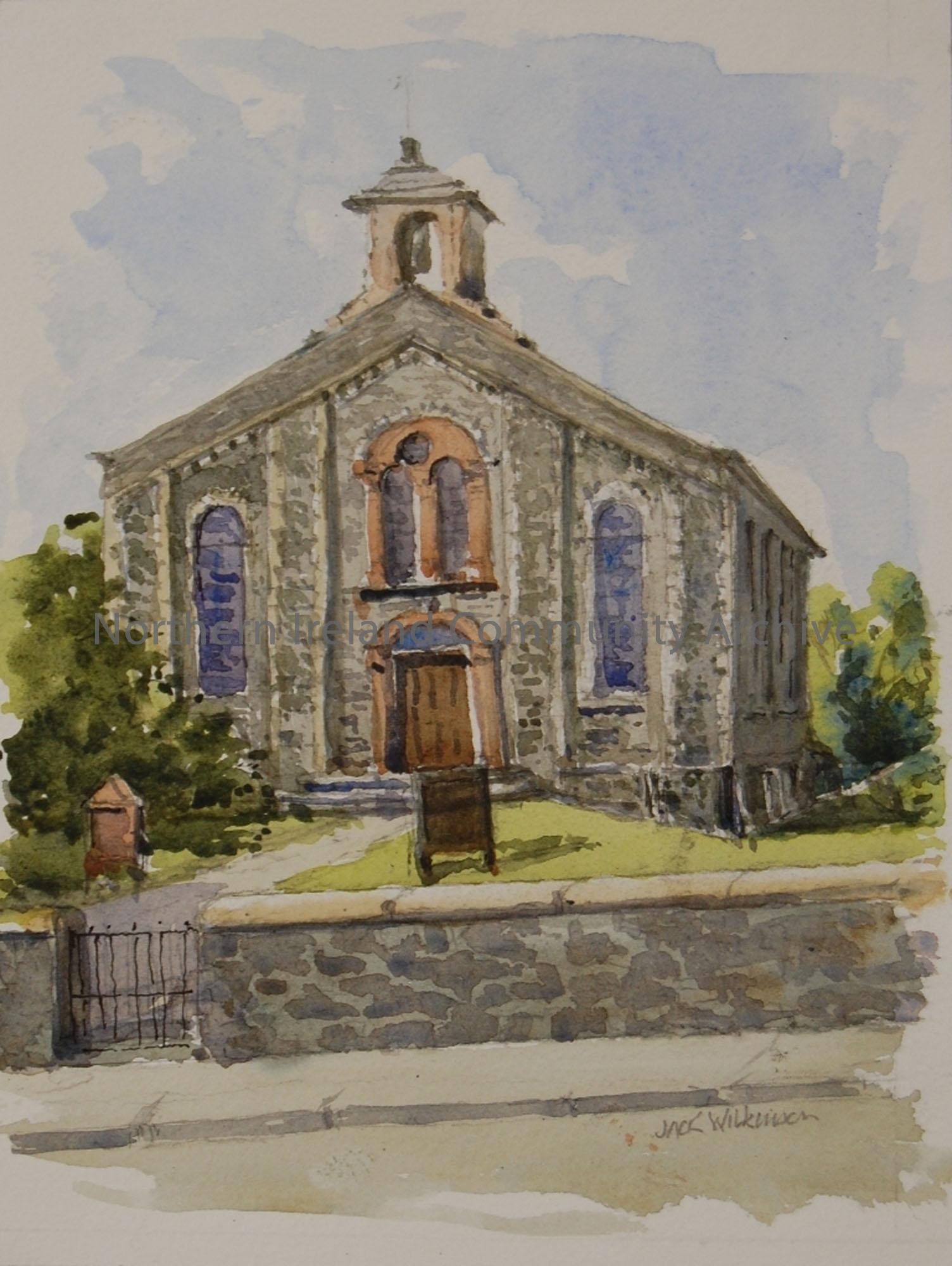 Watercolour of Methodist Church, Ballymoney Co. Antrim by Jack Wilkinson