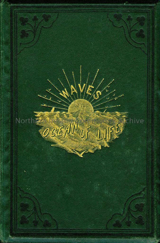 Book titled 'Waves on the Ocean of Life: A Dalriadian Tale' by Mrs Ward. Dedicated, by permission to the Right Honourable the Earl of Antrim, Glenarm Castle, Couty Antrim, Ireland.