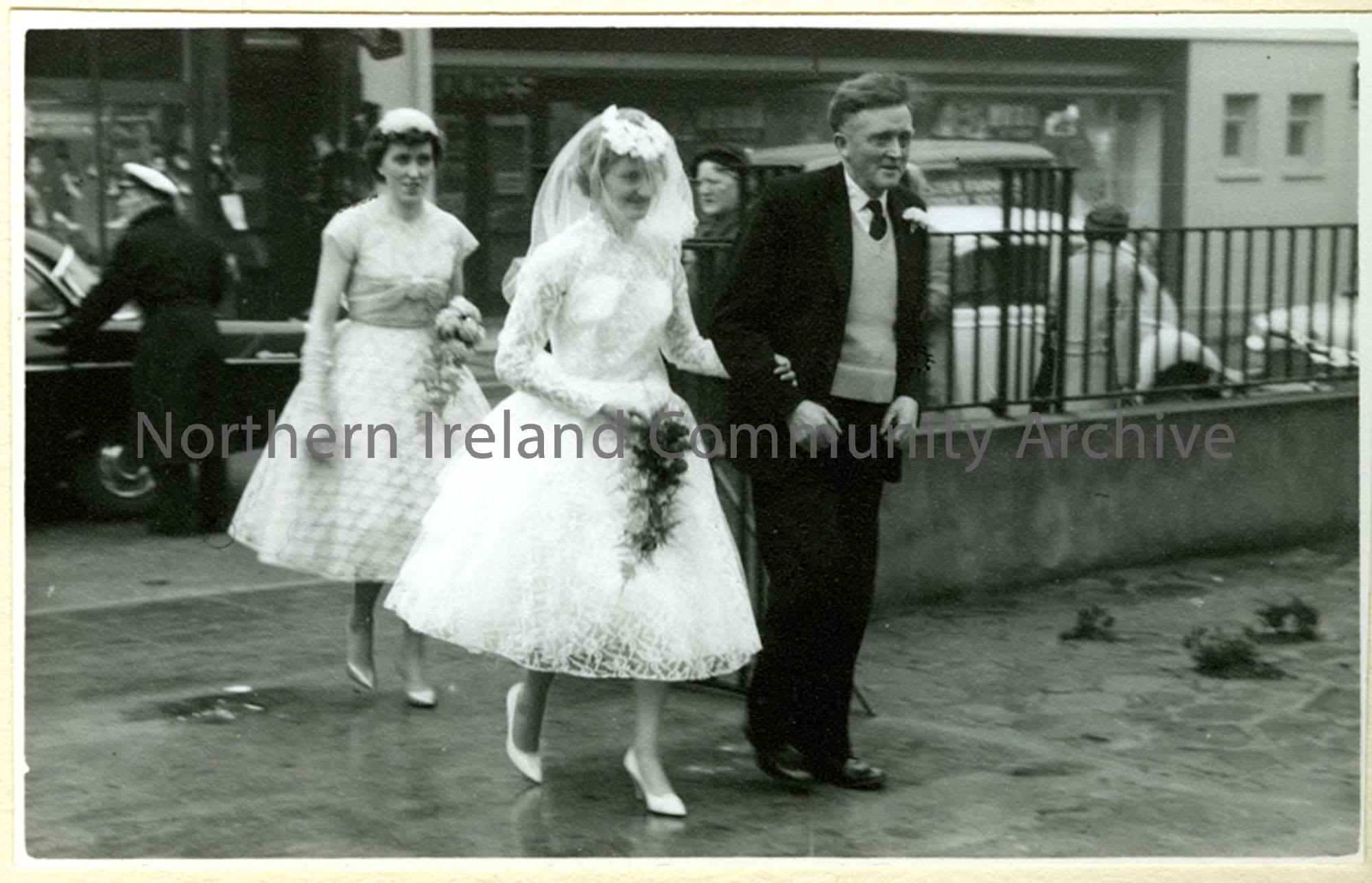 Wedding of George Turbitt and Sarah Ann McAfee in New Row Presbyterian Church on 8th December 1960. James Gamble was the best man and Mary Elizabeth Sinclair was the bridesmaid.