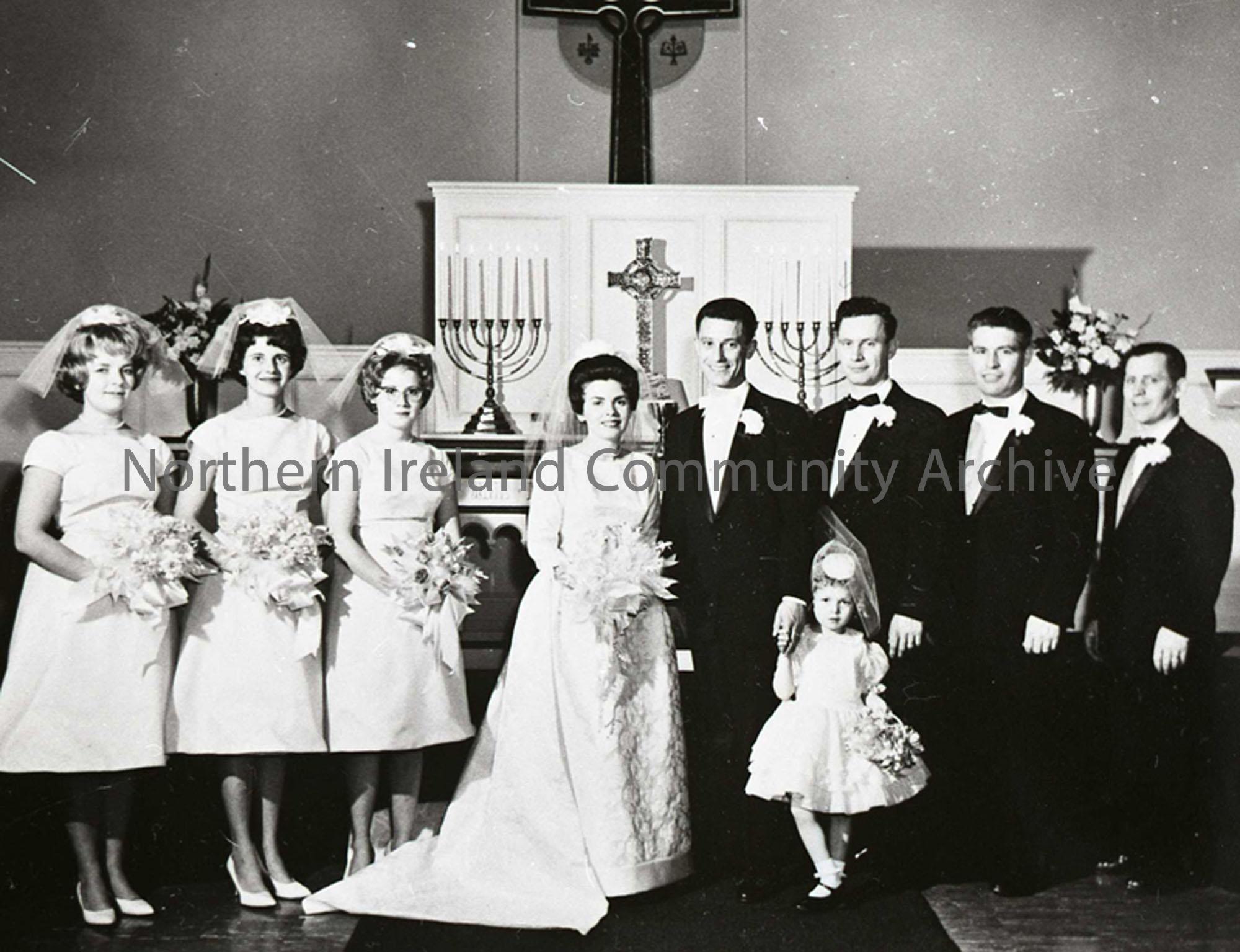 Wedding of Mr. Hugh Kane, Coleraine and Miss Joan Carolyn Witter, living in Detroit. The wedding took place in Detroit in August 1963. Attending the groom were (left to right) his brother, Mr Harry Kane, Jackie and Ronnie Mullan, all formally of Coleraine.