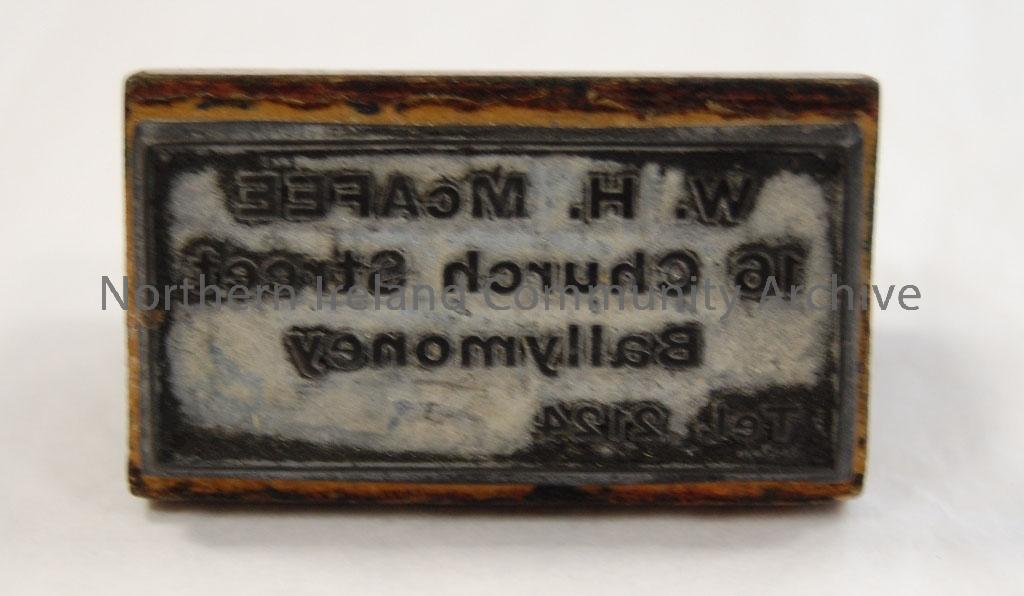 W.H McAfee with address wooden stamper. – 2010.393 (2)