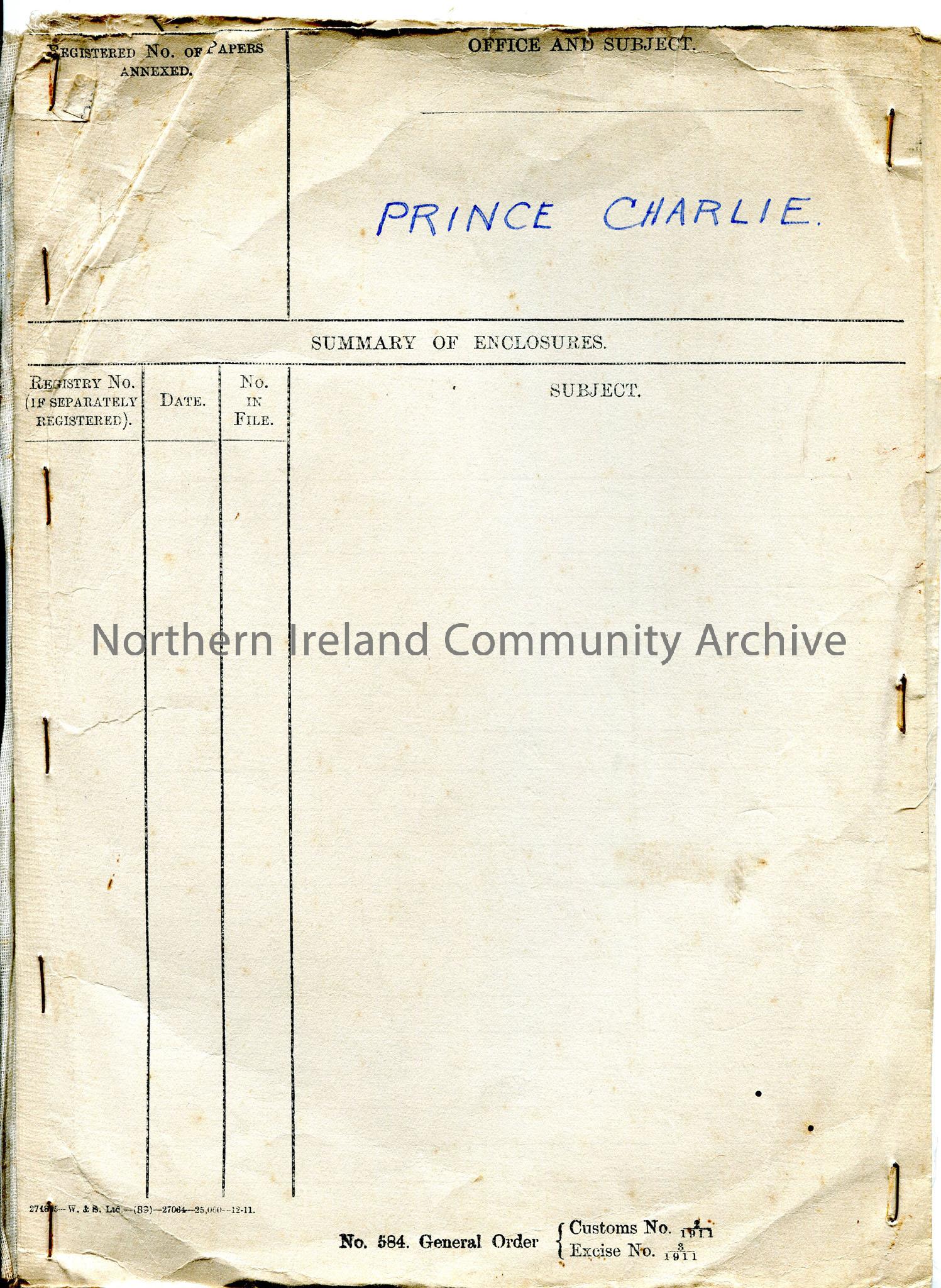 White Customs and Excise folder labelled 'PRINCE CHARLIE'.