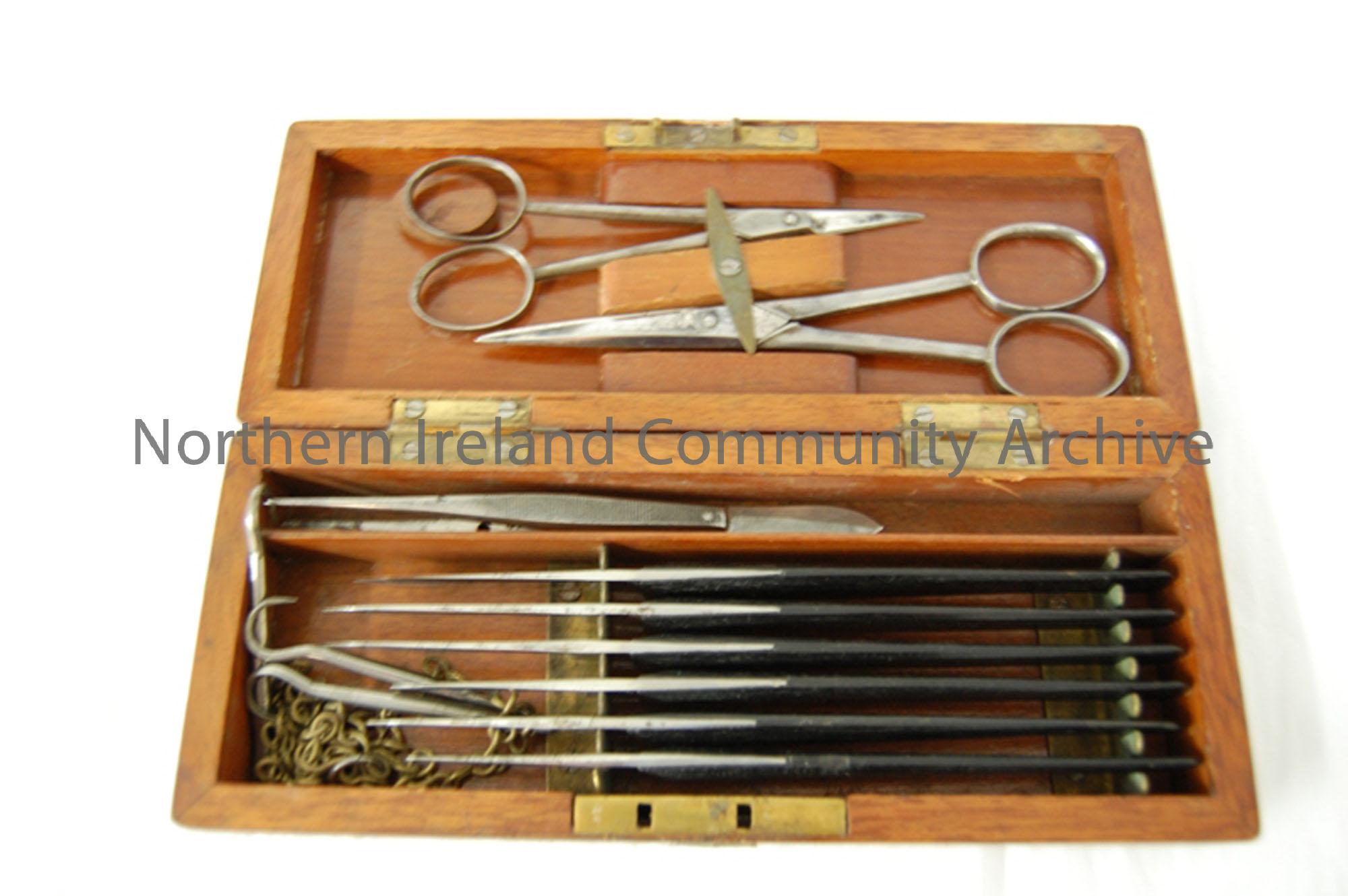 wooden box containing surgical scalpels, bought by Dr. Johnston in antique medical store.