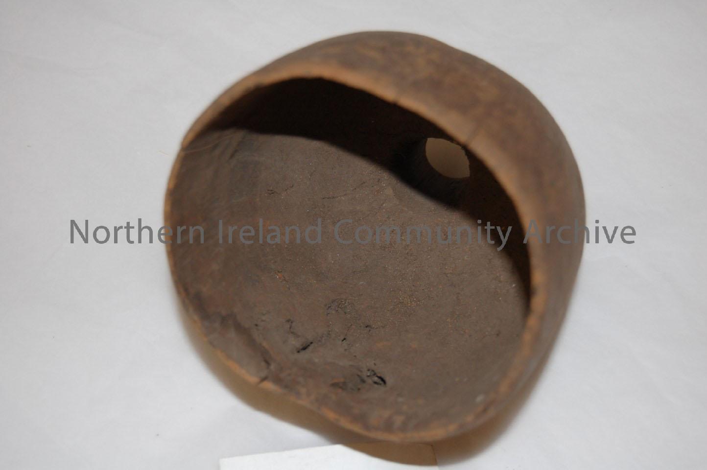 wooden goblet, base and stem of vessel missing, there is evidence of wood worm. – 1992.167 (1)