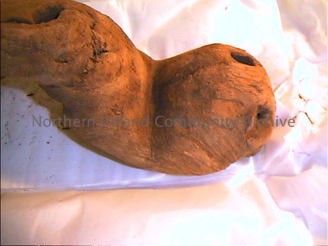 wooden yoke, used in animal husbandry, partially damaged at one end; ‘zoomorphic’ carved in the form of an animal. – 1998.387 (3)