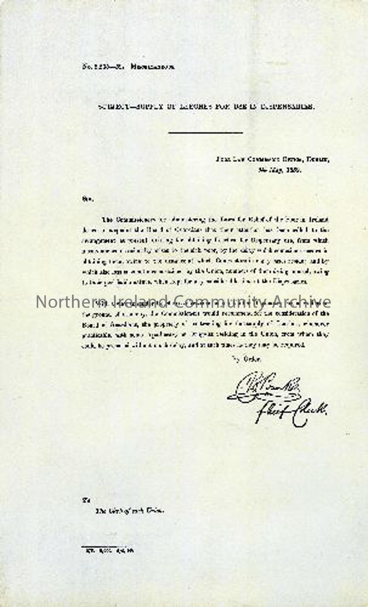 Letter from the Poor Law Commission Office, Dublin, to Limavady Workhouse regarding obtaining leeches for Dispensary use, 1859