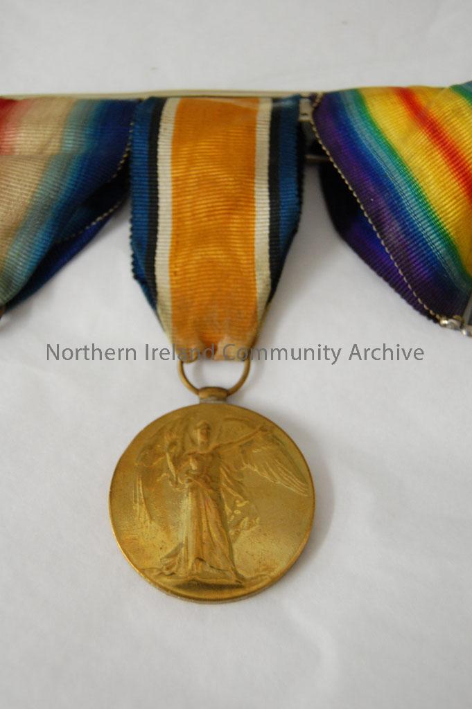 World War One Victory medal with original ribbon awarded to 11-16877 PTE.J.E.Megarry.R.IR.RIF – 2010.715.8 (2)