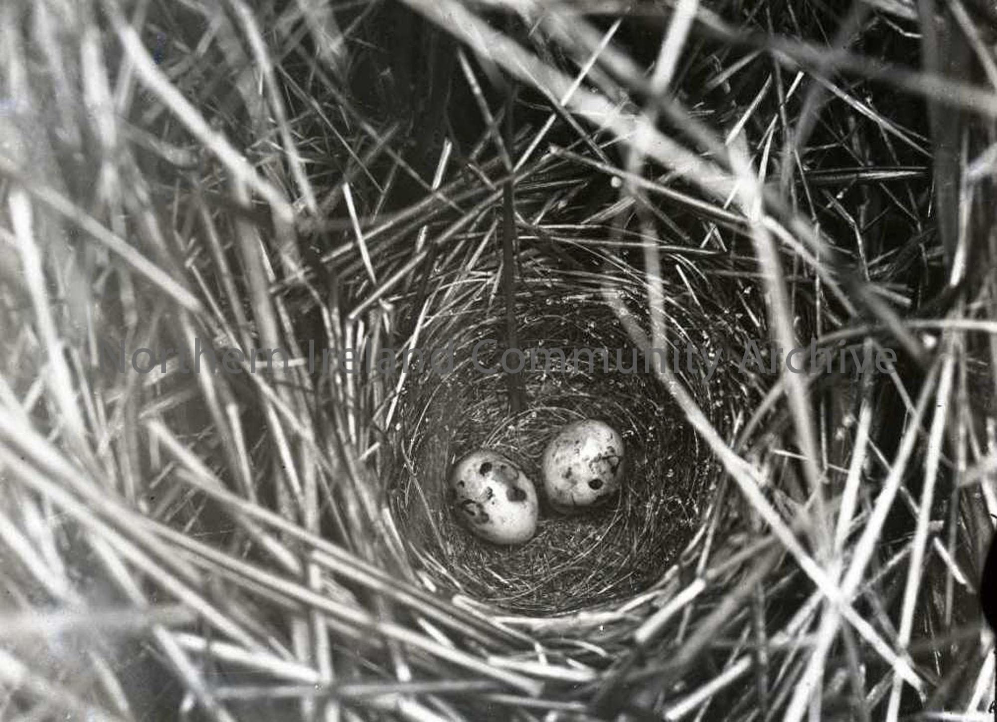 Entitled young blue tits - eggs in nest amongst tall grass. No 119 in Nature Slides inventory