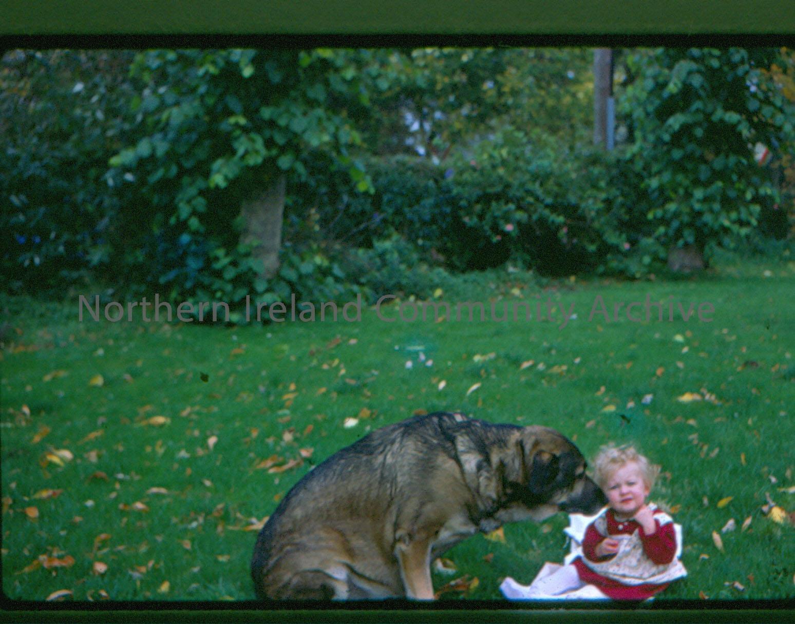 slide depicting young girl with dog. Slide numbered 27 and dated March 1978