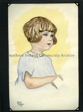 colour portrait of a young girl with bobbed hairstyle. Signed by Gertrude Trimble at bottom left