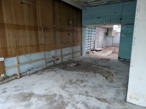 Jimmy recalled the upper side of his shop was originally a house, the doorway has always been in the middle and opened into a front porch with the shop door to the left, and straight ahead were steps that led down into the house.