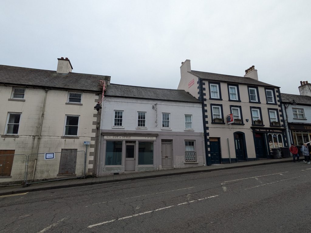 Visible in photos from Chronicle and Constitution Archive, Coleraine Museum collection. Proprietor names as K. McAlonan. JMcC research states Kathleen McAlonan died 2008. Her husband Mick continued to live in the property until his death in 2019. |