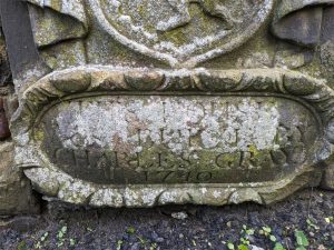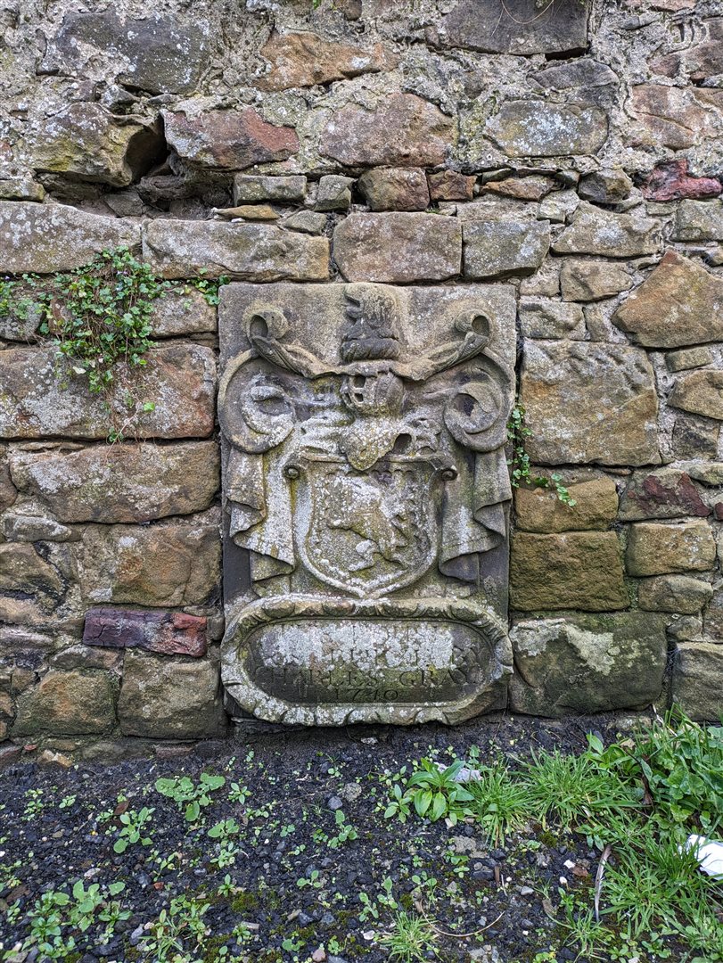 Datestone built into wall rear of yard reads ‘THIS HOUSE WAS BUILT BY CHARLES GRAY 1740’. Originally built into the front(?) of the building, it was moved to the yard during renovations.